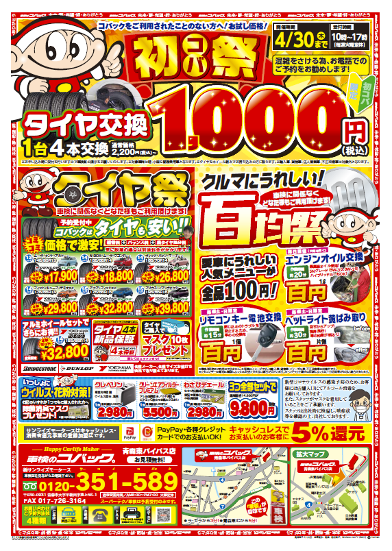 車検のコバック青森東バイパス店では、タイヤ祭り開催中!!