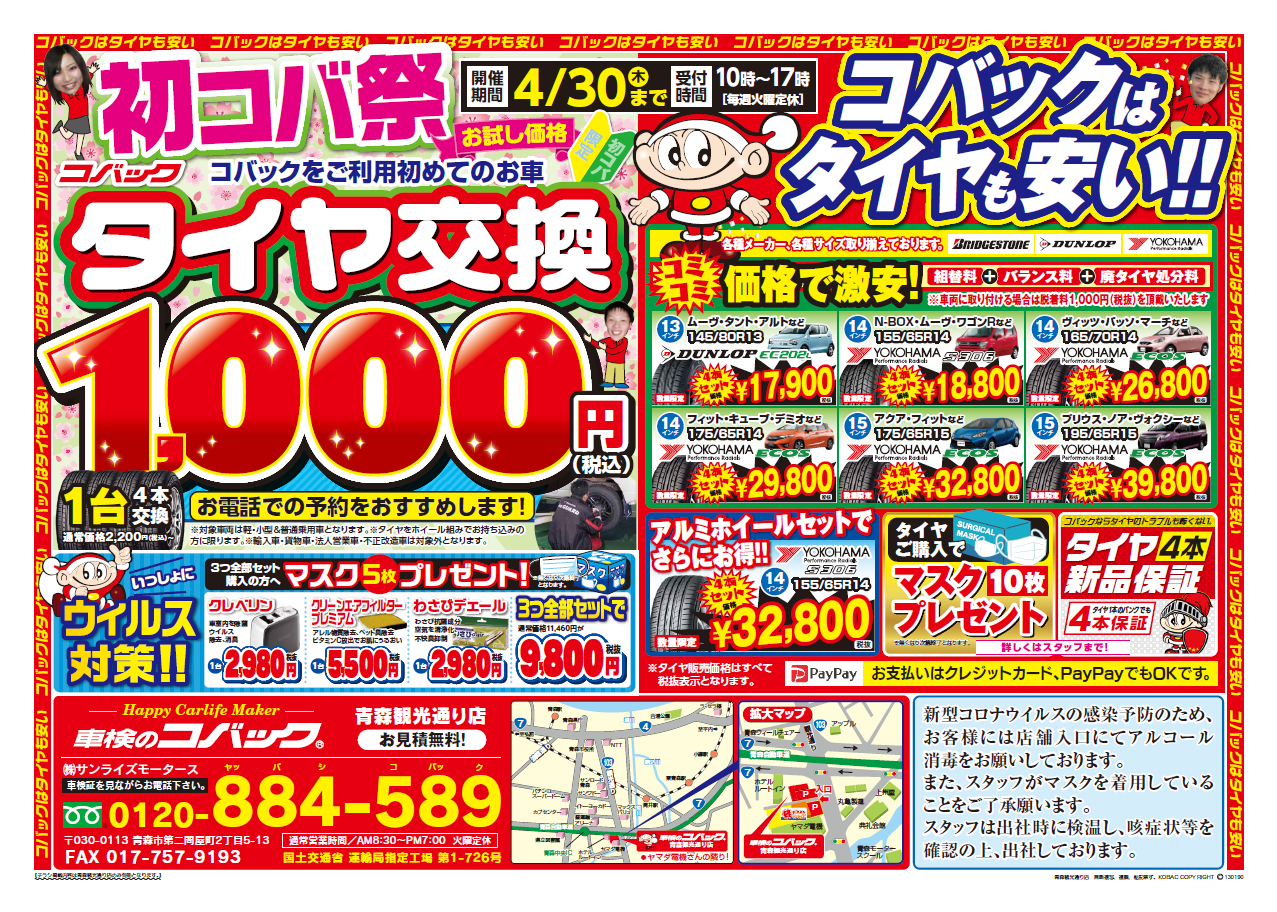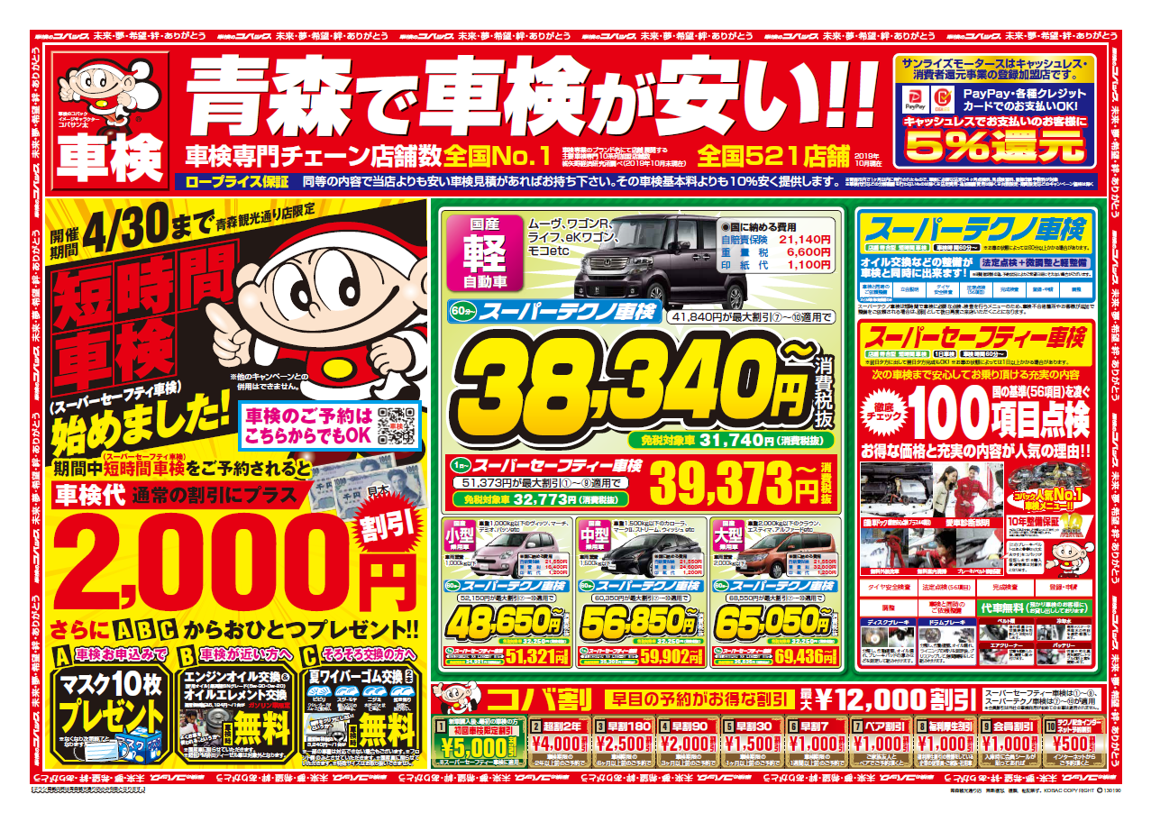 車検のコバックでは毎月お得なチラシを出しております!!!