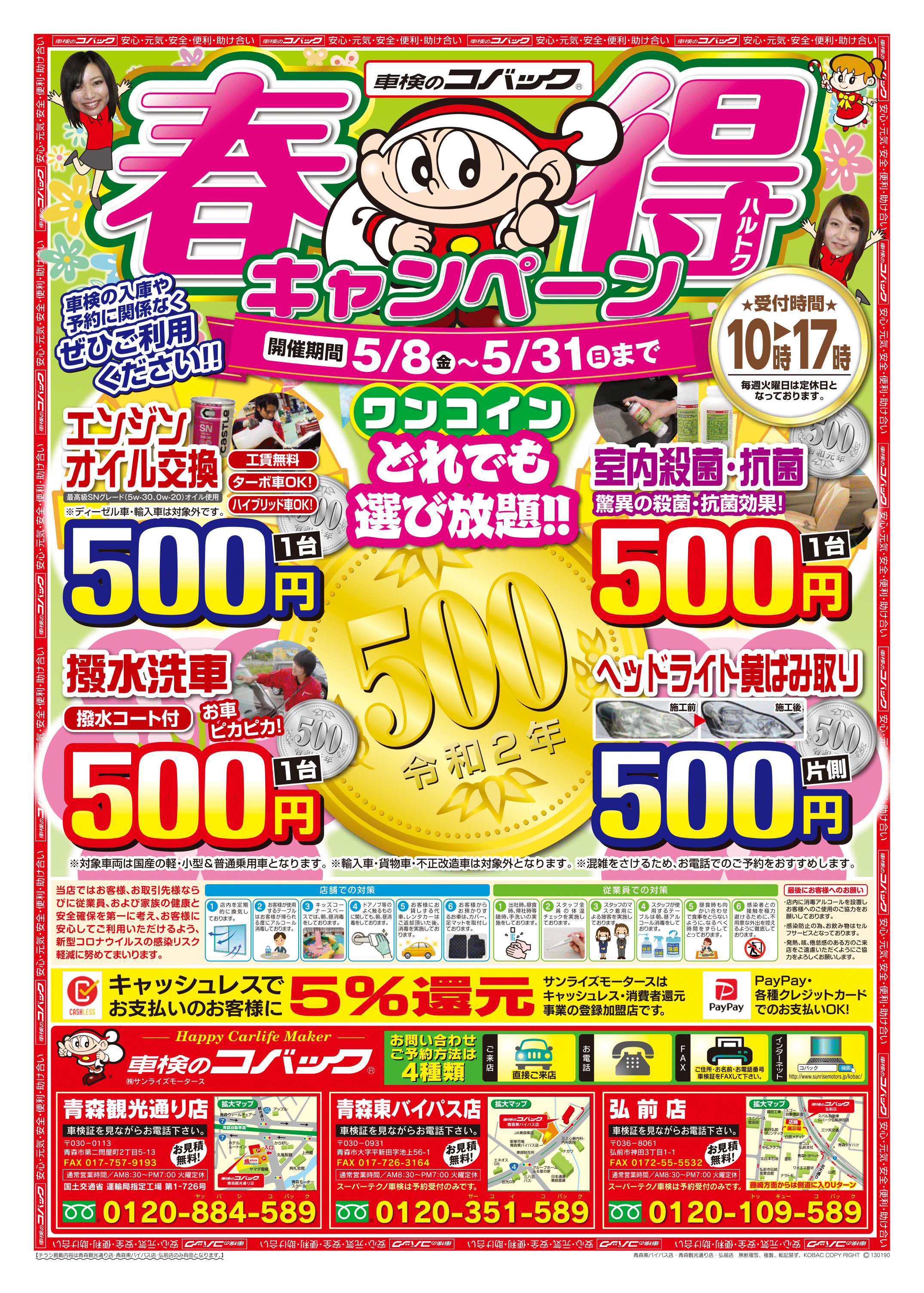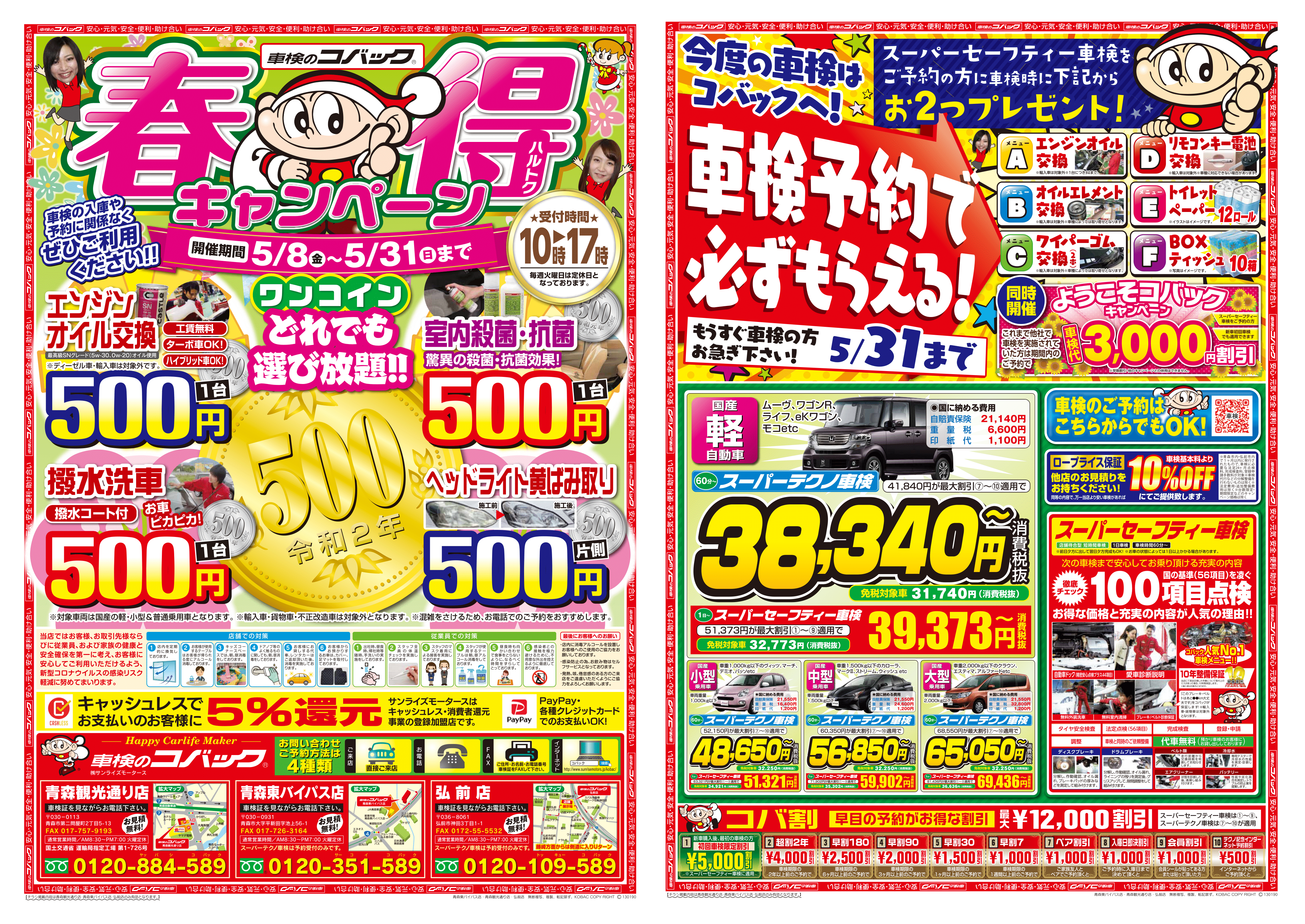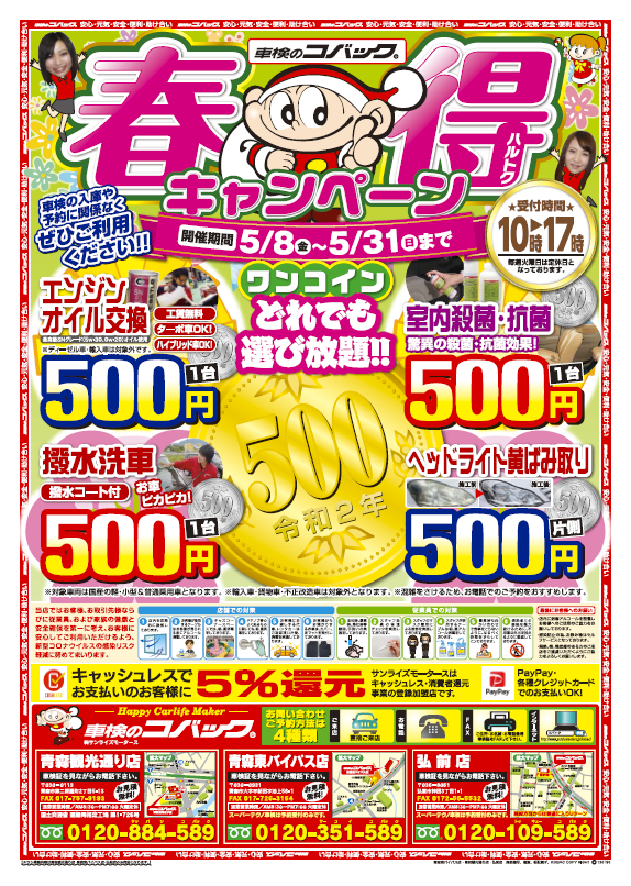 車検のコバックでは3店合同でワンコインキャンペーンを実施致します。