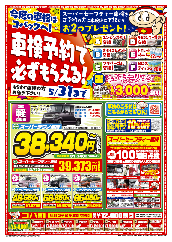 チラシ期間中にスーパーセーフティー車検をご予約すると