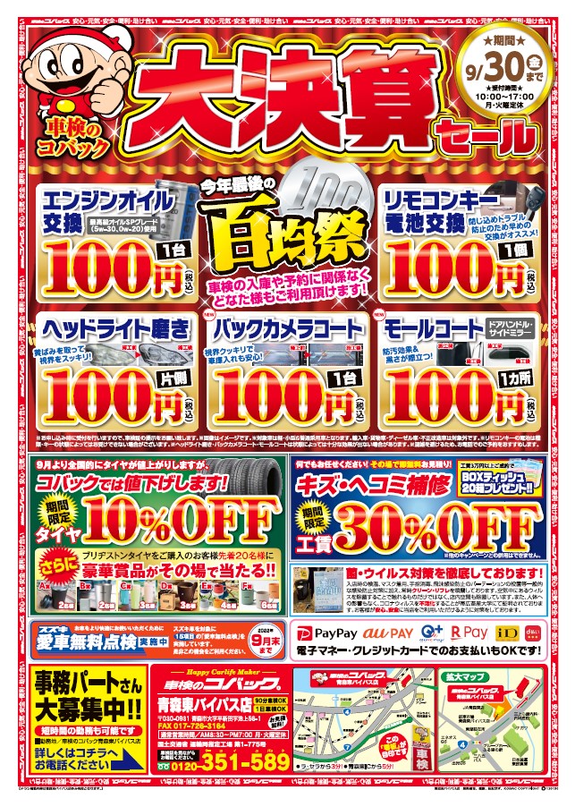 青森市の東部にあります車検のコバック青森東バイパス店です。