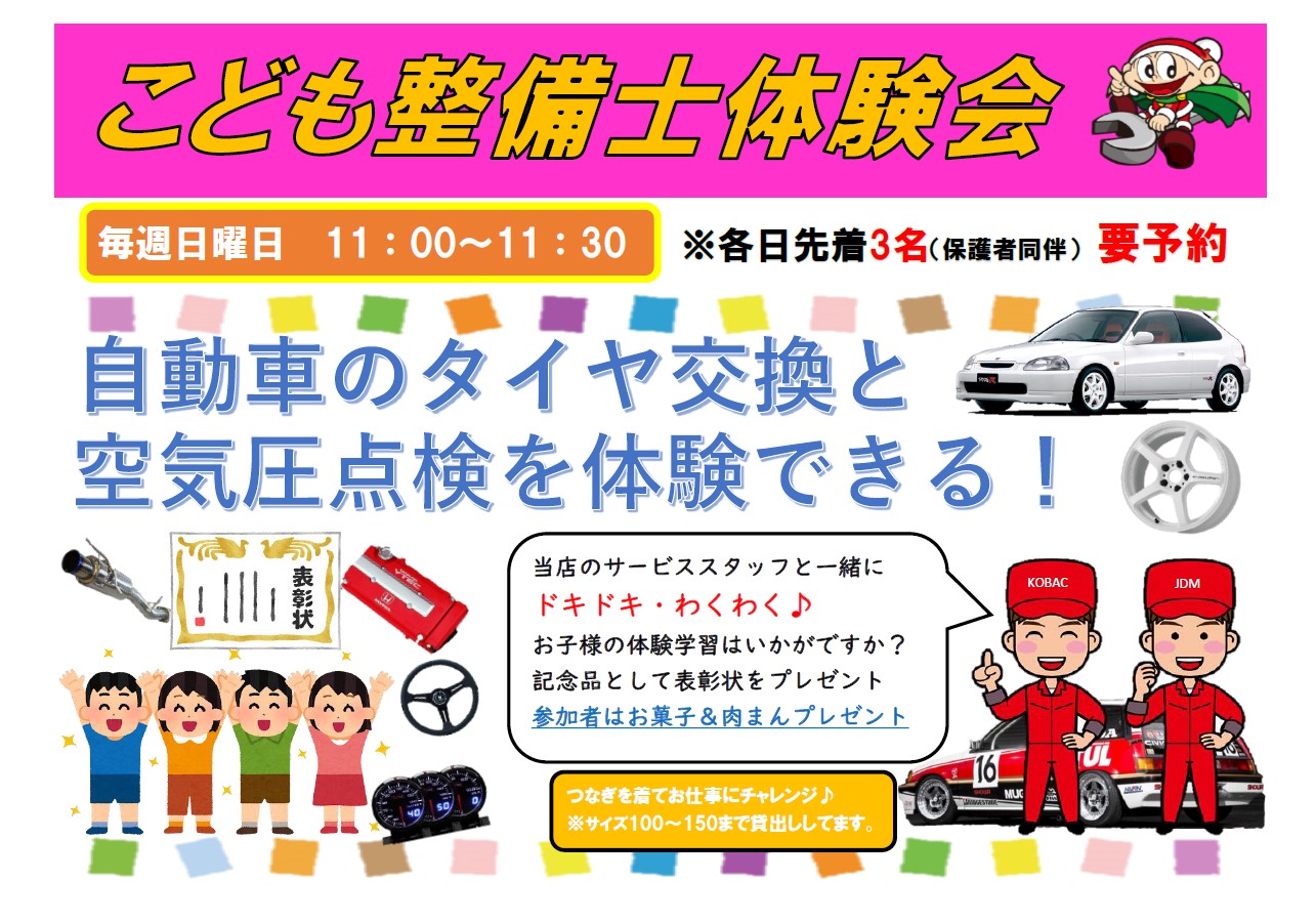 先日、毎週日曜日のイベントで「こども整備士体験会」が開催されました!