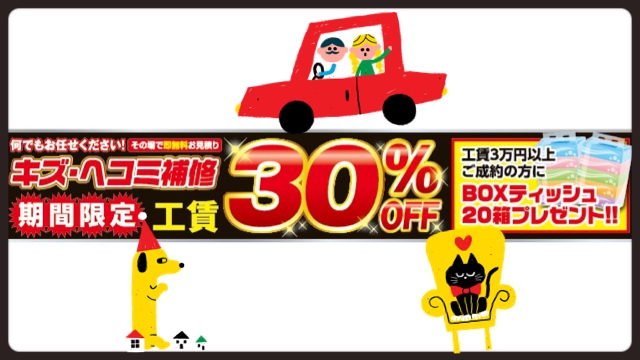 キズ・ヘコミ補修 期間限定 工賃30%OFF