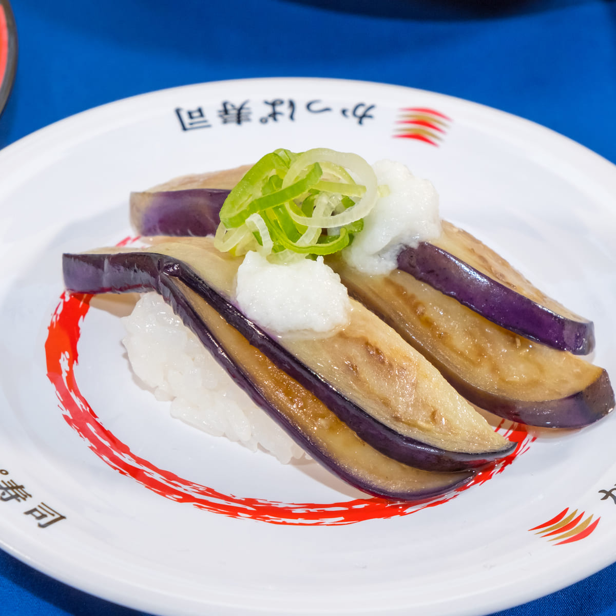 茄子の揚げ浸し寿司とろろ付き(1人2貫)です。