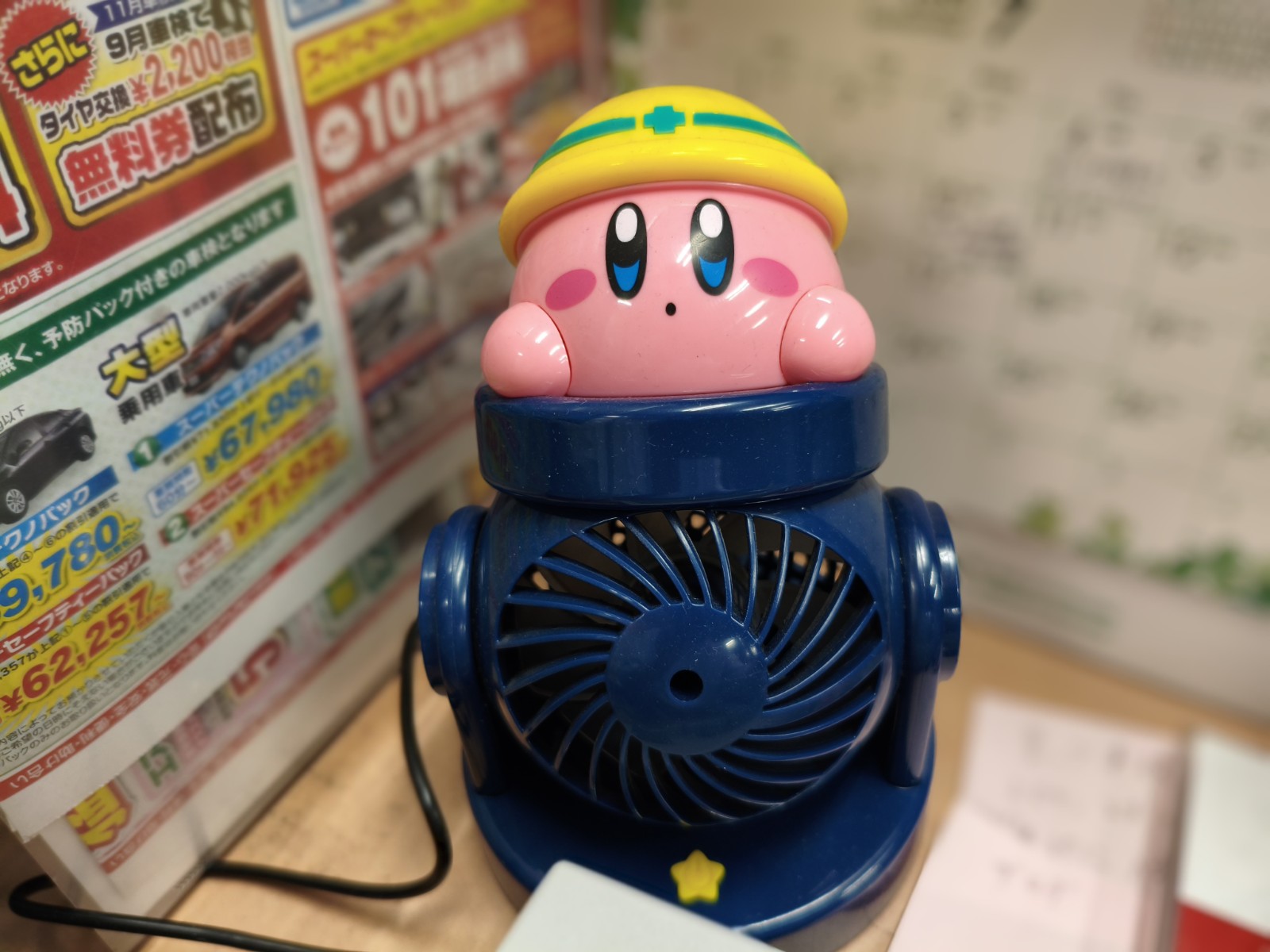 暑さ対策で置いたカービィの砲台扇風機ですが、