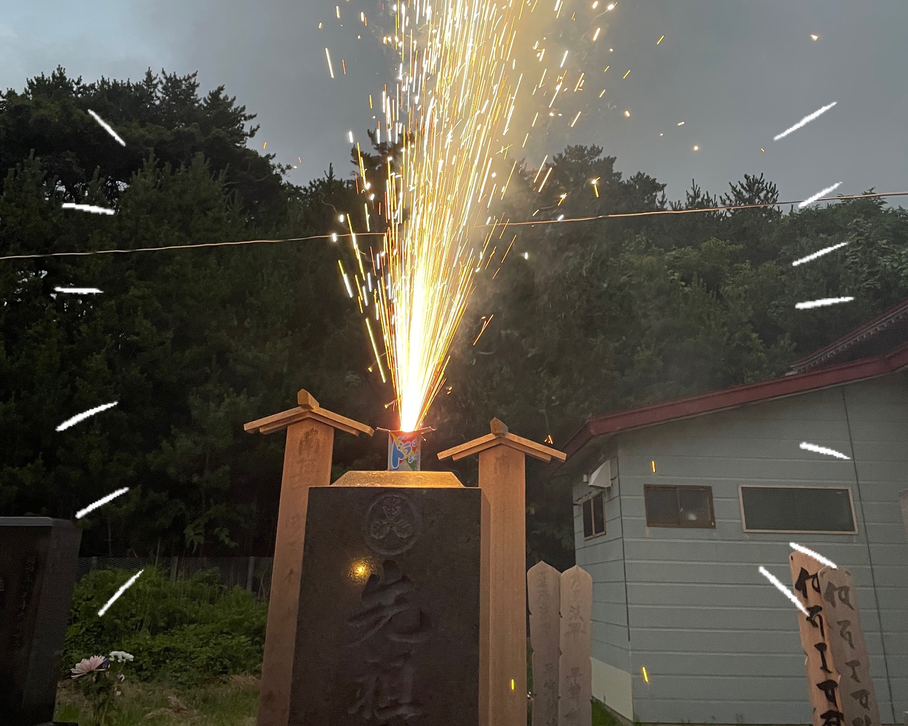 お墓で花火をしちゃいます(^^)