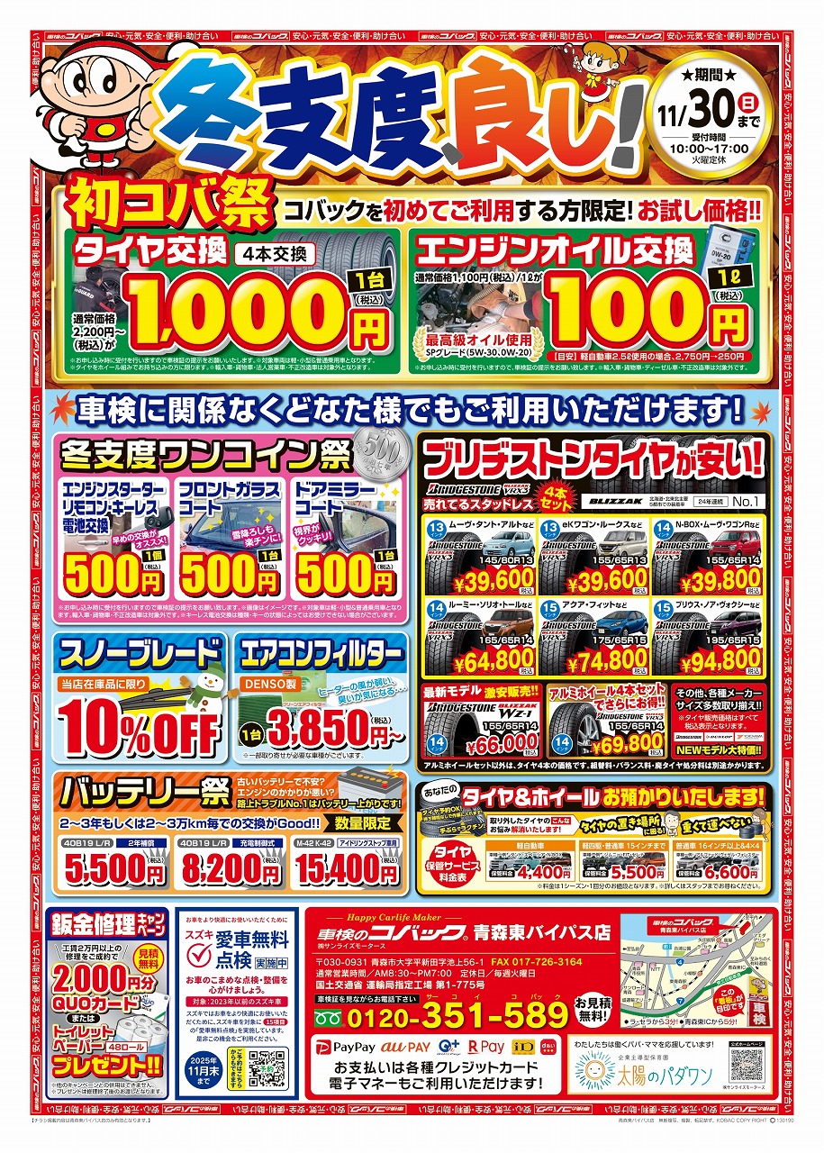 コバック青森東バイパス店の高谷です。